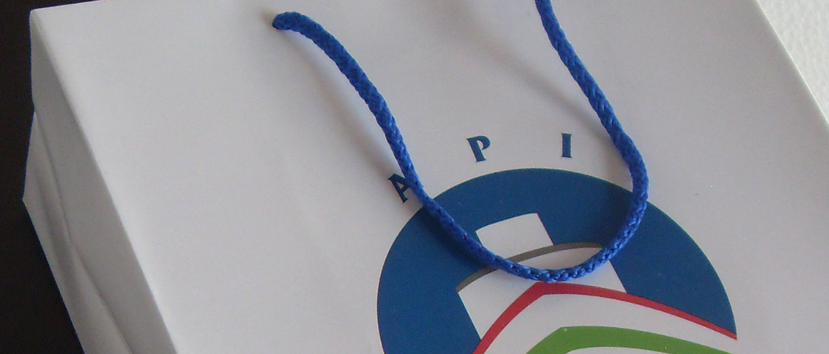 Trabajamos en papel couché de 130, 150 y 200 grs, pueden ser en laminado (plastificado) brillante o mate que protege al papel y la impresión, le da resistencia y durabilidad a la bolsa. Muy buena apariencia para impresión multicolor o a una tinta. Solicite su cotización aquí o escríbanos a info@publibolsas.com