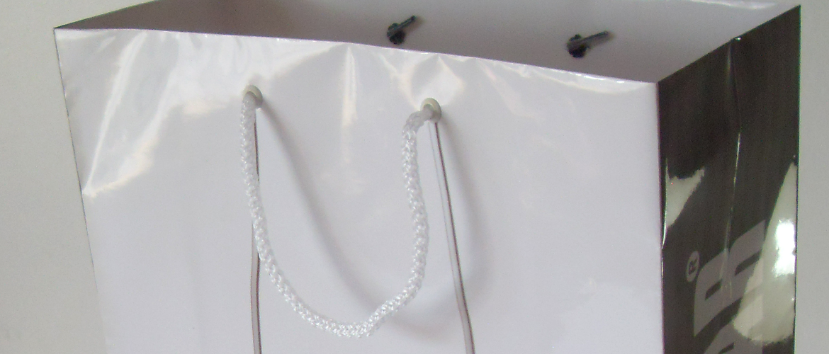 Impresión tipo plasta a un color, logo y texto en color extra, asas cordón macramé agujeta. Bolsas para boutique, comercio, shopping, eventos, regalos y ocasión.