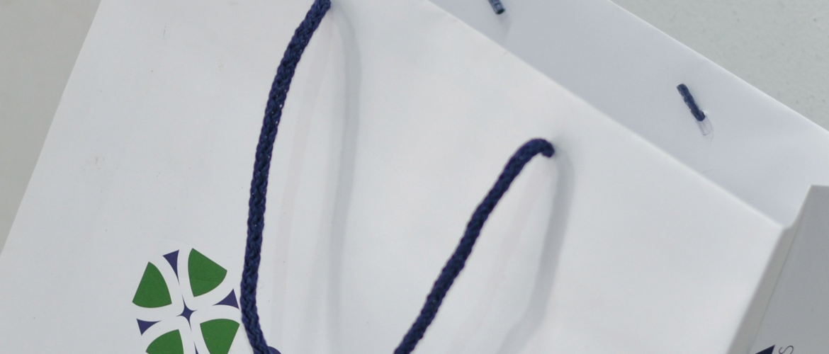 bolsa blanca con diseño a un color Bolsas con diseño sencillo 1 tinta. Bolsas de papel couché en 130, 150 o 200 grs. con acabado mate o brillante. Bolsa bond 120 grs, la medida puede ser ajustada con base en su requerimiento, impresas desde un color hasta diseño a selección de color (full color).