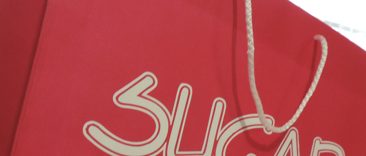 Bolsa completa a un color, diseño impreso en blanco Bolsa impresa a un color completo tipo plasta, logo textos calado en blanco. Este modelo puede ser bolsa bond de 120 grs, bolsa papel couché 130, 150 o 200 grs con laminado (plastificado) mate o brillante. Asas estándar de agujeta macramé.