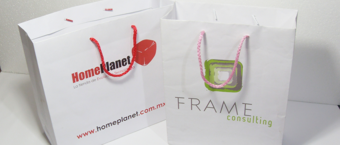 Bolsas papel bond 120 grs. Pueden incluir impresión de su diseño, marca o motivo desde un color o multicolor CMYK selección. Las medidas de la bolsa se pueden ajustar y van desde 10 cm hasta 40 o 50 cm.